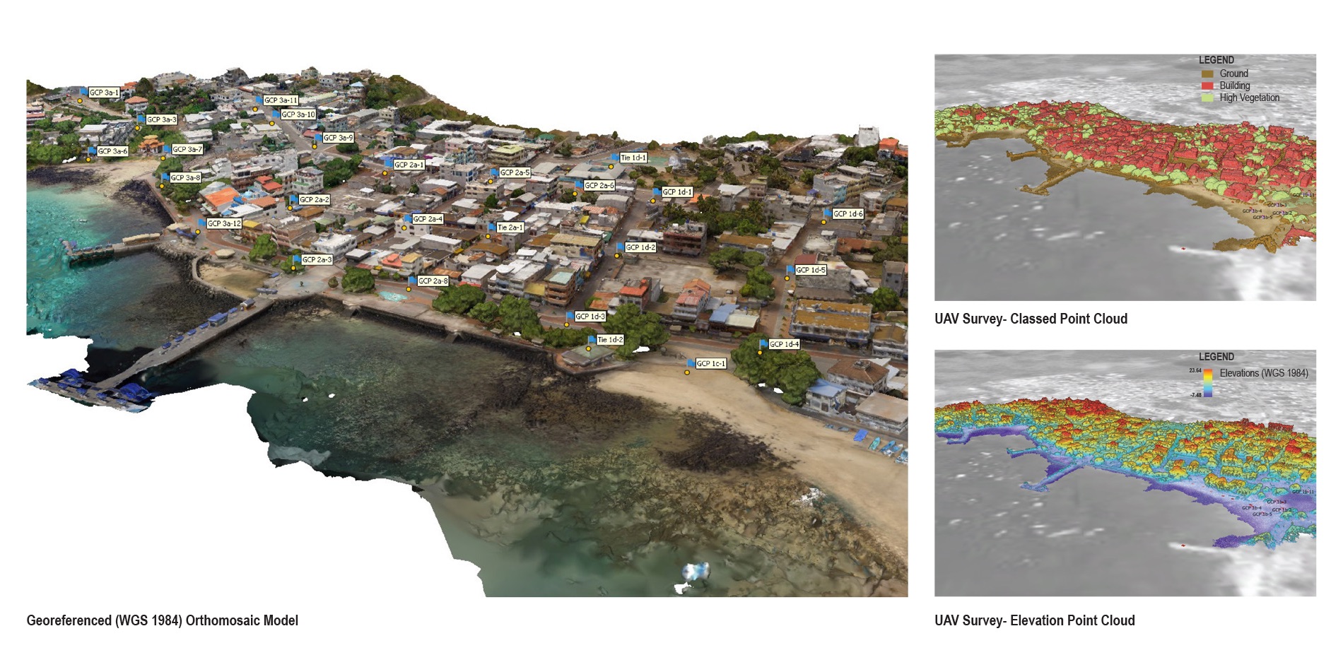 Our team used UAVs (drones) and GPS/ GNSS site survey equipment to record aerial survey information of Puerto Baquerizo Moreno’s shoreline and ravines.